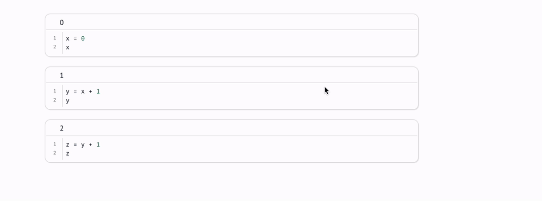 To provide reactive execution, marimo creates a directed acyclic graph (DAG) out of your cells. Execution order is determined by the DAG, not by the order of cells on the page.